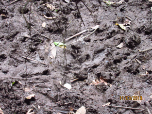 No primeiro dia em cada reserva, nós íamos às localidades onde esses animais poderiam ser encontrados (contando é claro com o auxílio dos funcionários José Ramos e Sr. Heleno), sempre buscando por vestígios dessas espécies, como pegadas e áreas reviradas. Nesse lugares, aproveitamos também para fazer a busca ativa por pelos, isto é, encontrá-los no substrato.